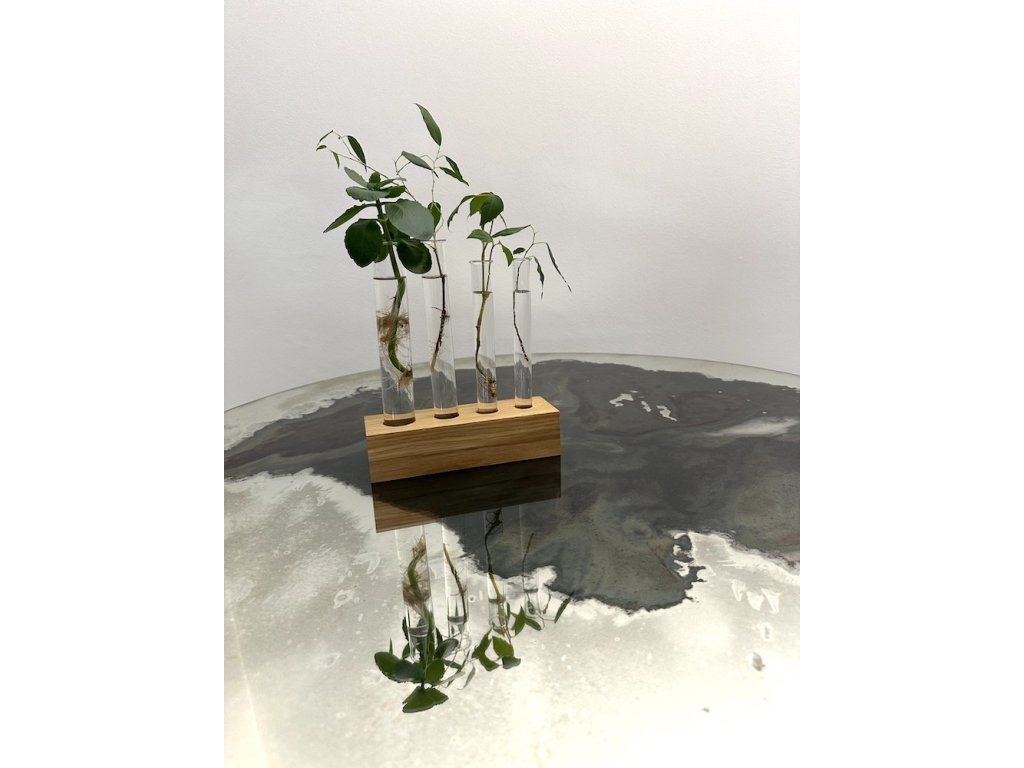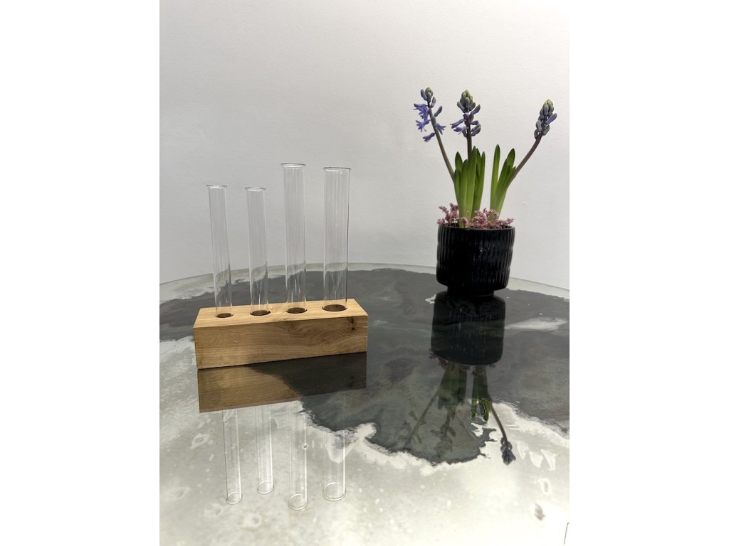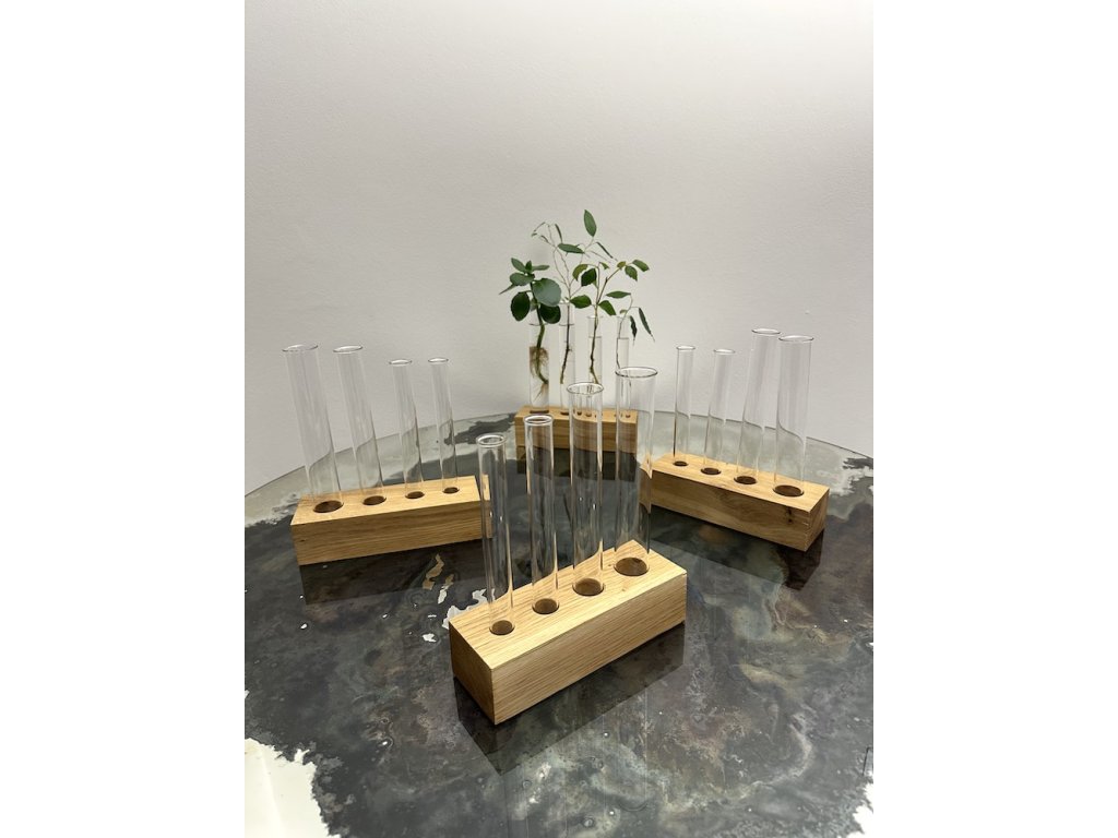 Pečlivě vybrané fošny, nařezáno, vyvrtáno, obroušeno a nalakováno tak, aby byl tenhle stojánek ozdobou každé police či parapetu.