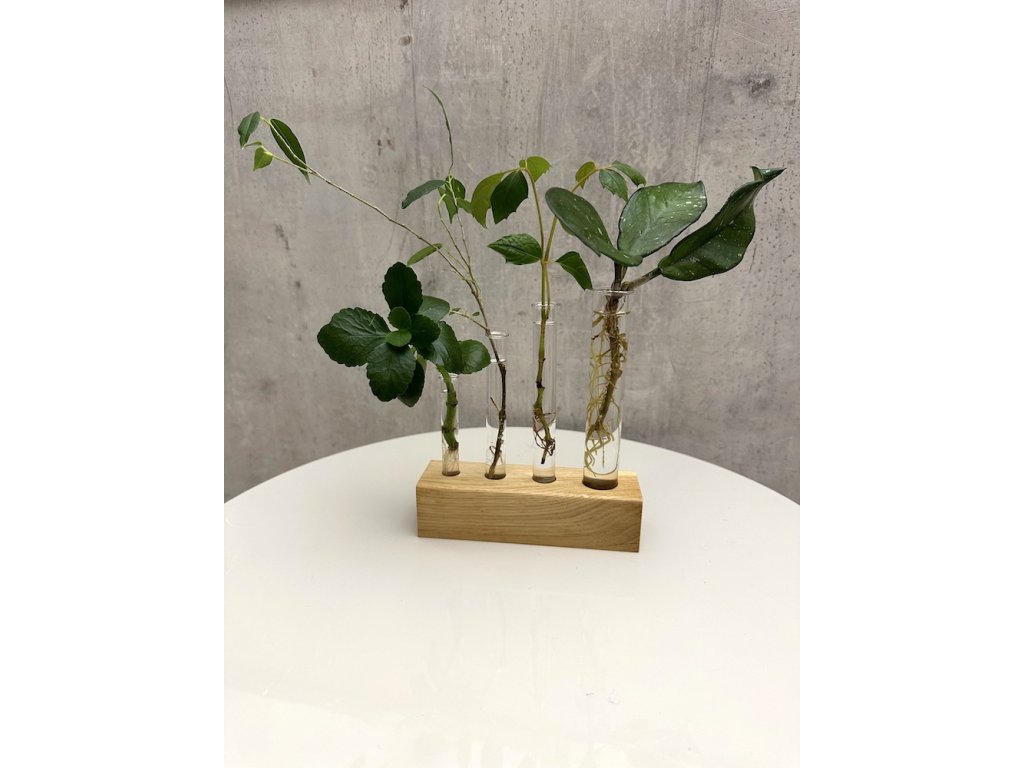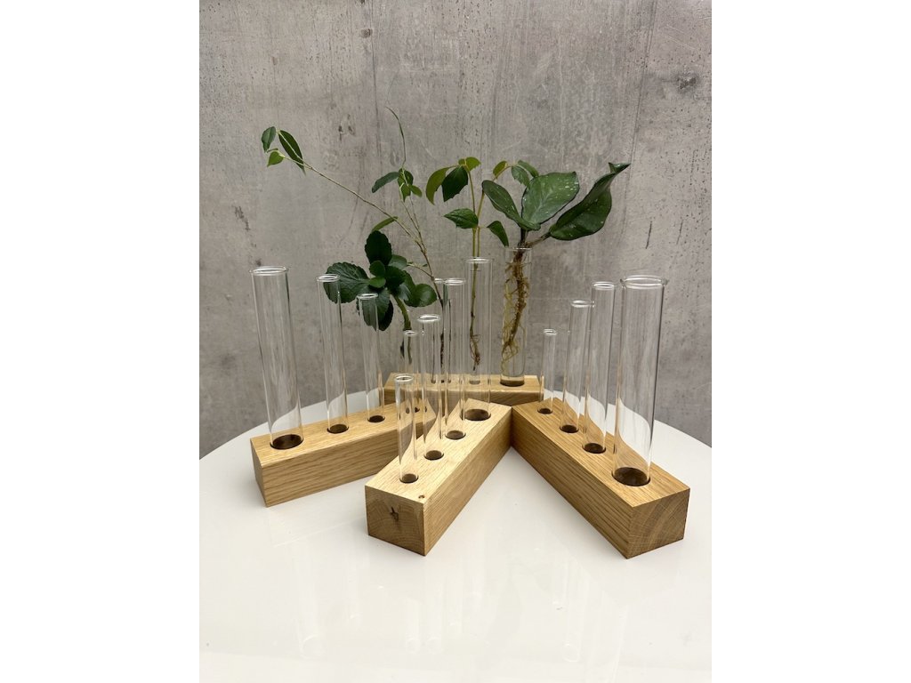 Pečlivě vybrané fošny, nařezáno, vyvrtáno, obroušeno a nalakováno tak, aby byl tenhle stojánek ozdobou každé police či parapetu.